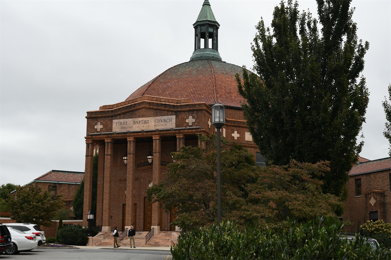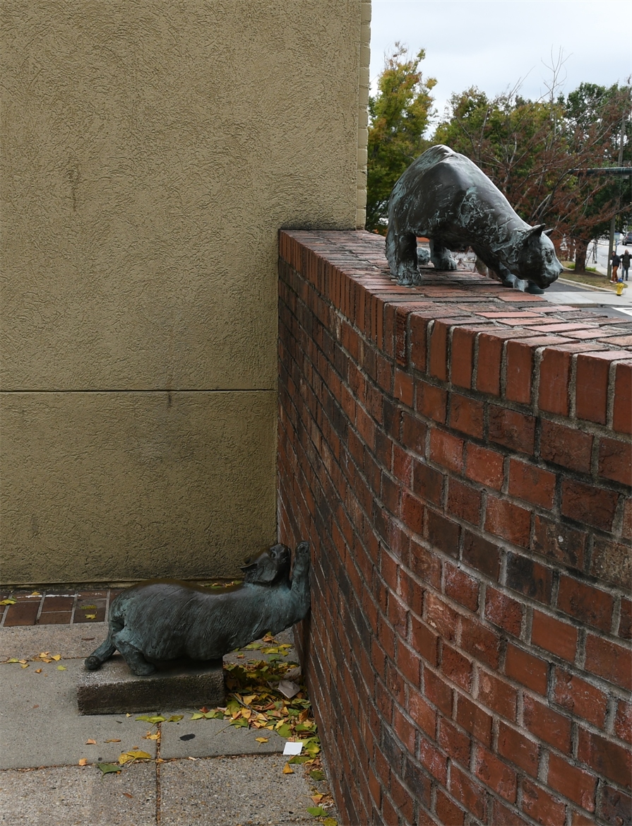 Sunday it was supposed to rain all day but when we got up it really wasn't so we decided to go do the architecture tour we found online. There are a large number of buildings that were built in the 1920's and are still here. I carried my new upside down umbrella to keep the rain away and it worked! The walking tour started with the First Baptist Church which would have been nice to go inside we considered it bad form to interrupt Sunday service to take pictures! There are some really pretty buildings here and some interesting statues. My favorite building was the Grove Arcade, it was designed as a shopping mall and has been restored to include shops and some apartments.